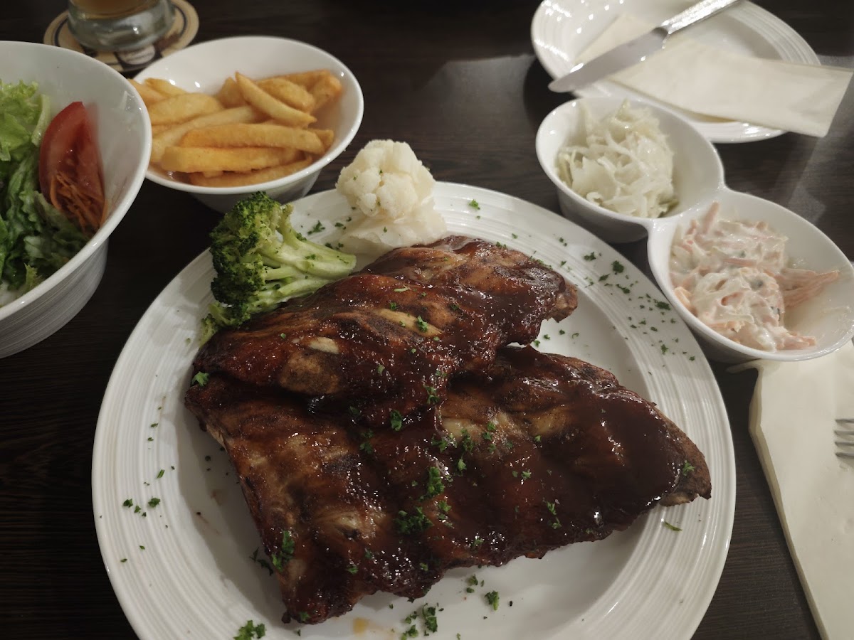 Wir haben hier die Spare-Ribs gegessen. Vorweg gab es einen großen Beilagensalat. Sehr frisch und mit einem guten Dressing. Die Portion mit den Ribs war üppig. Das Fleisch war so gut gegart, dass es fast von den Knochen gefallen ist. Geschmacklich war es top! Sehr leckere Pommes dazu und noch 2 kleine Krautsalate als Beilage. Das Preis-Leistungs-Verhältnis ist spitze! Der Service ist aufmerksam. Wenn der Chef mal aus der Küche kommt, dann schaut eher nach seinen italienischen Gästen, aber das macht nichts. Das Ambiente ist für ein Bürgerhaus gut.